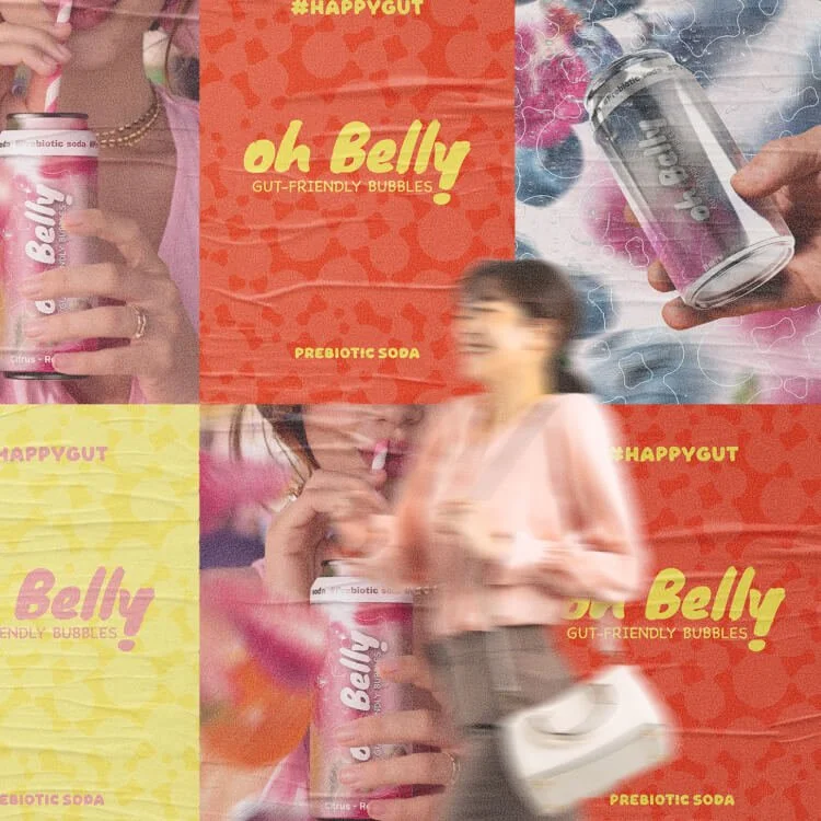 Oh Belly, c'est un concept de soda prébiotique gut-friendly, une marque pensée pour les personnes qui veulent une alternative aux boissons pétillantes classiques, sans sucre, légère et meilleure pour la digestion.